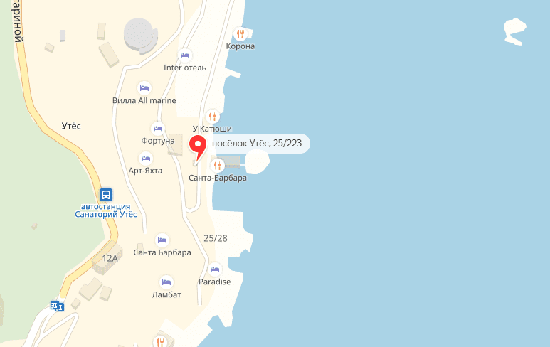 Междугородним автобусом до автовокзала г.Алушта, далее маршрутным такси «Алушта (автовокзал) - сан. «Утес», до санатория.