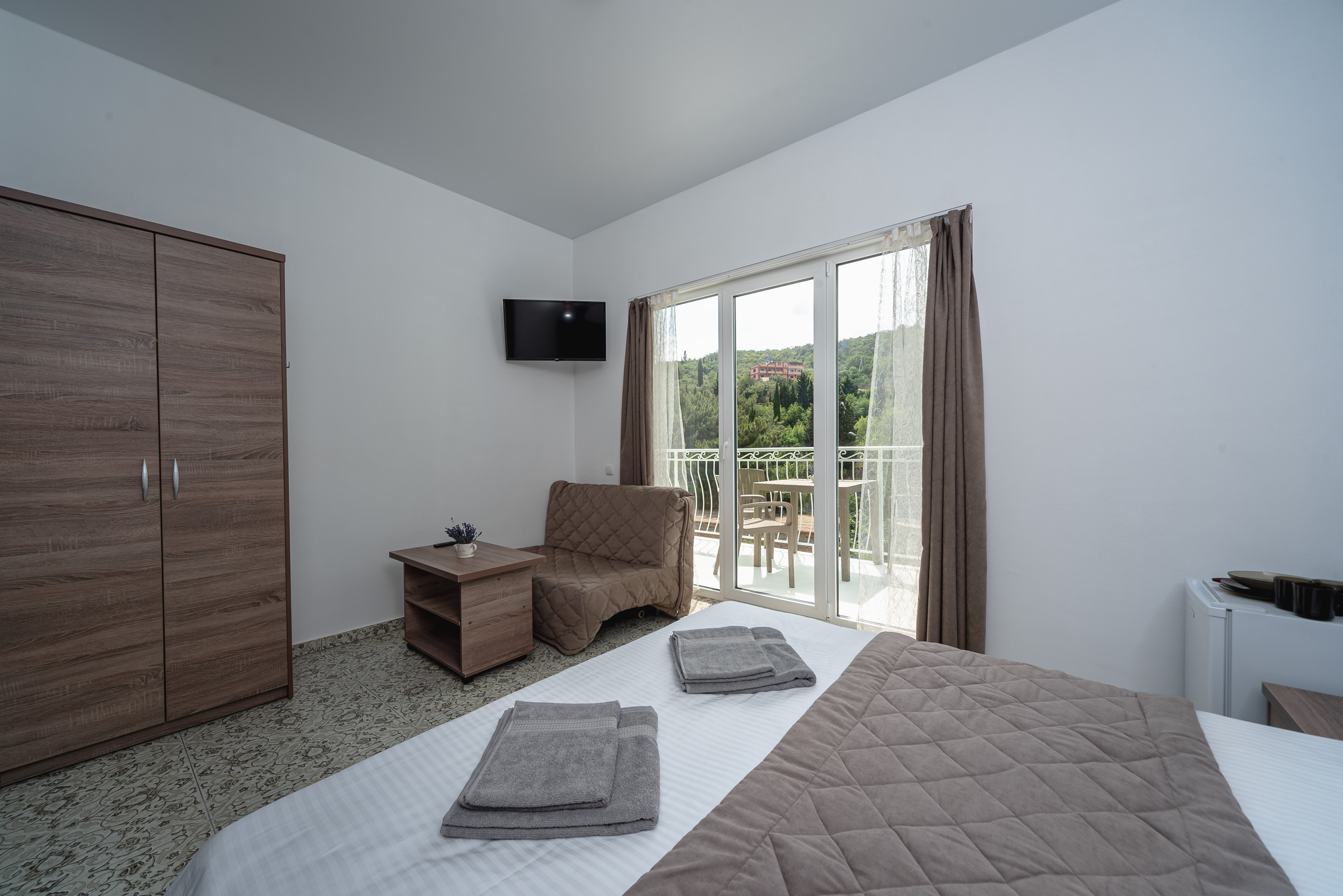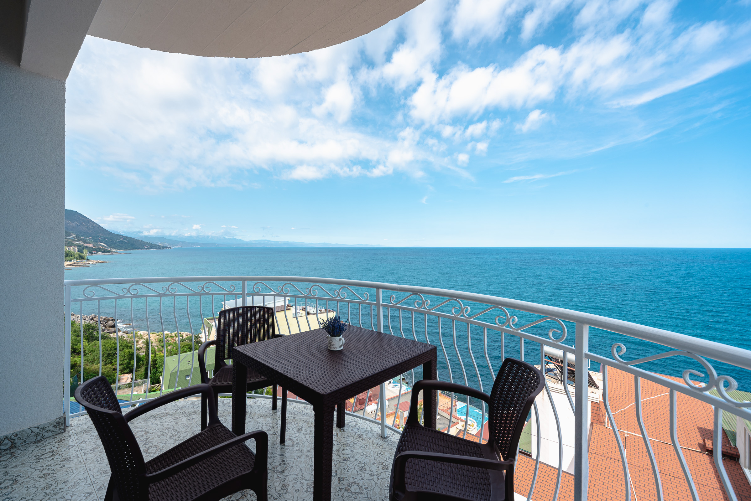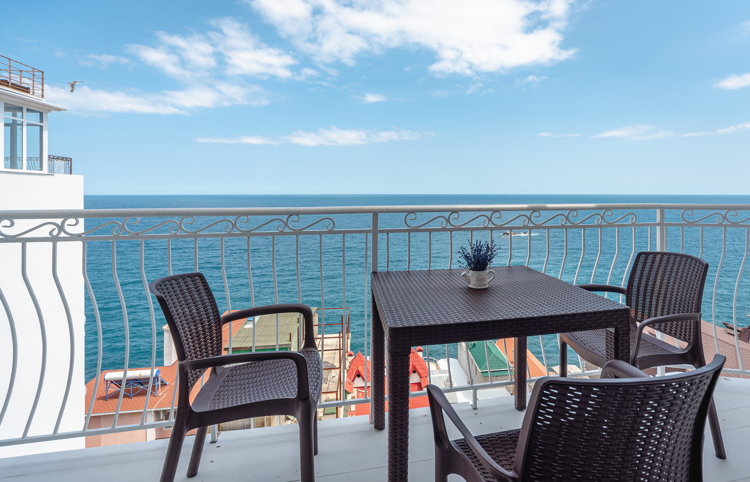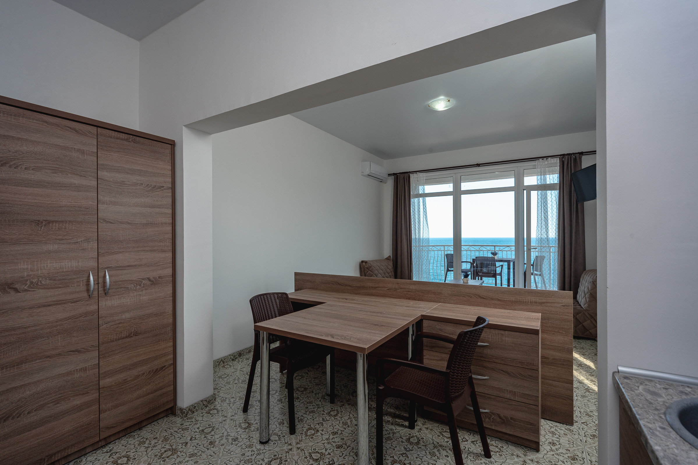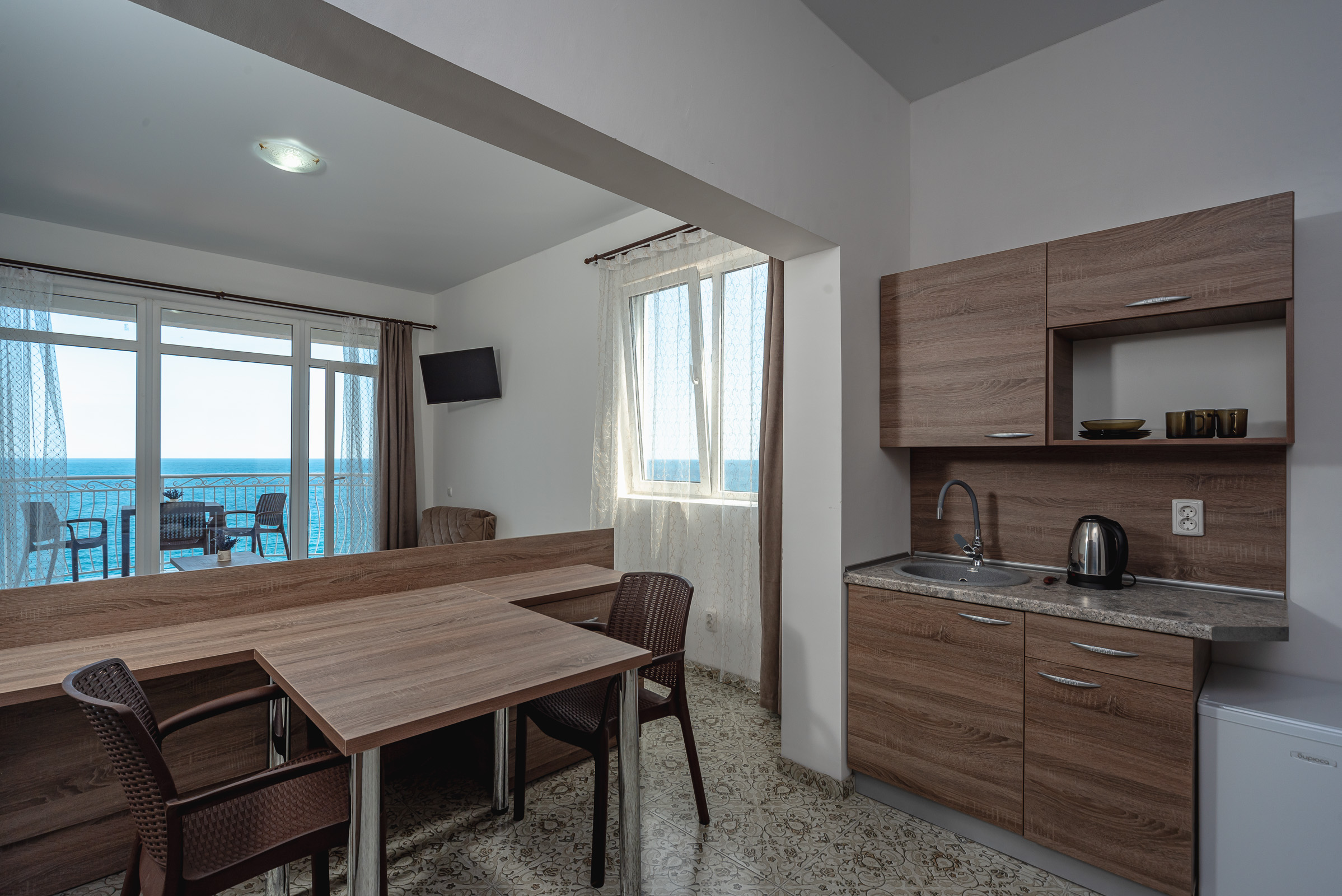 | Апартаменты 2-местный 1-комнатный с видом на море | 12 кв.м. | 2 чел. | Балкон (с мебелью), Мебель (диван, кровать двуспальная, прикроватные тумбочки, стол, столик журнальн... | |