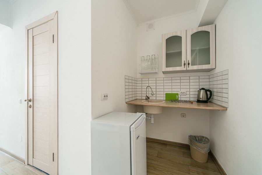 - Оборудование: кофемашина, набор посуды, телевизор, холодильник, электрочайник